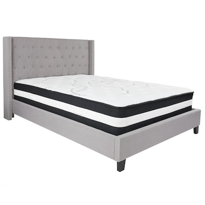 Flash Furniture Riverdale Tufted Upholstered Platform Bed in Light Gray Fabric with Pocket Spring Mattress, Queen (HGBM43)