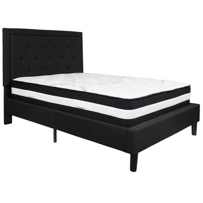 Flash Furniture Roxbury Tufted Upholstered Platform Bed in Black Fabric with Pocket Spring Mattress, Full (SLBM22)