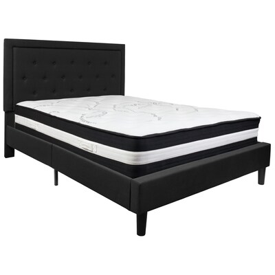 Flash Furniture Roxbury Tufted Upholstered Platform Bed in Black Fabric with Pocket Spring Mattress, Queen (SLBM23)