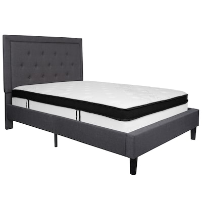 Flash Furniture Roxbury Tufted Upholstered Platform Bed in Dark Gray Fabric with Memory Foam Mattress, Full (SLBMF30)