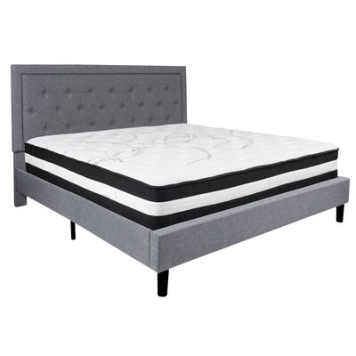 Flash Furniture Roxbury Tufted Upholstered Platform Bed in Light Gray Fabric with Pocket Spring Mattress, King (SLBM28)