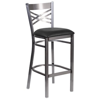 - Color: Black Vinyl Seat/Clear Coated Metal Frame; Material: Foam, Plywood, Steel, Vinyl