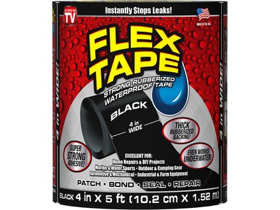 Flex Seal general purpose tape is the original super-strong, waterproof tape that can patch, bond, seal, and repair virtually anything! It is specially formulated with a thick, flexible, rubberized backing that conforms to any shape or object. Unlike other tapes available, Flex Seal tape's bond will increase with time and pressure. Perfect for a variety of surfaces with many uses around the car, boat, RV or home.