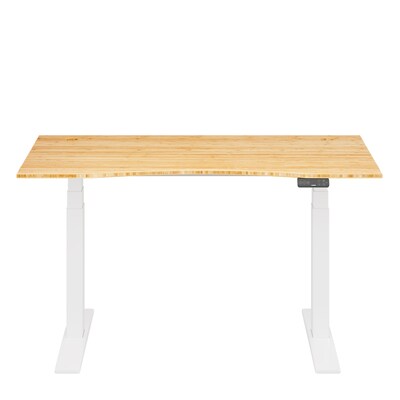 FlexiSpot E7COMMERCIAL 55''W Electric Adjustable Bamboo Standing Desk, Bamboo/White (E7WCOMCR5528LBZB)