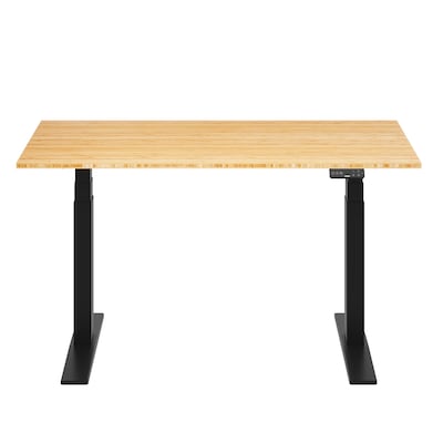 FlexiSpot E7COMMERCIAL 55''W Electric Height Adjustable Standing Desk, Bamboo/Black(E7BCOM5528-LBZB)