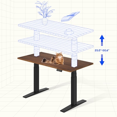FlexiSpot E7COMMERCIAL 55''W Electric Height Adjustable Standing Desk, Black Walnut/Black(E7BCOM5528-BW)