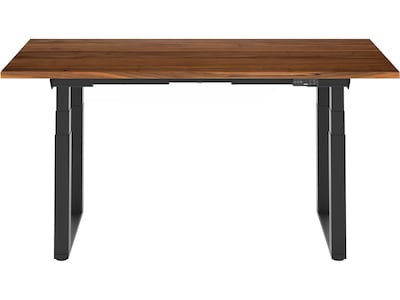 - Made with a solid wood desktop in a black walnut finish and a solid carbon steel base in black