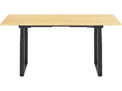 FlexiSpot E7Q 78"W Electric Adjustable Standing Desk, Bamboo/Black (E7QBR7830-LBZB)