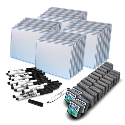 - Includes 24 double sided dry erase mats, 24 black dry erase markers, and 24 erasers, making it a 72-piece set perfect for classroom use.