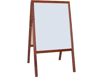 Marquee easels are perfect for announcements, sales, specials, menus, and much more. Restaurants, retail stores, schools, and photographers enjoy the lightweight and compact design of marquee easels. The easels fold flat for easy storage. This Flipside stained hardwood easel features white dry-erase board on one side and black dry-erase board on the reverse side.