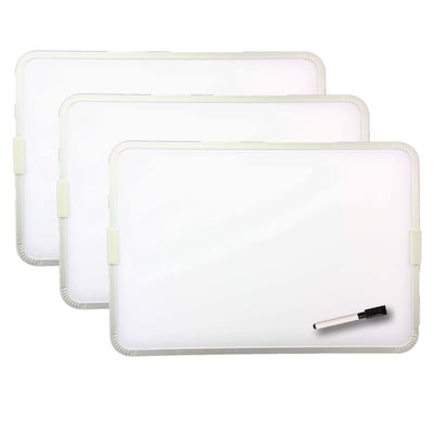 Both dry erase and magnetic, this board is perfect for use in a classroom, at home, or at the office. Features a magnetic and non-magnetic side for use. Comes with a magnetic dry-erase marker pen with cap eraser. Measures 9" x 12". Sold as 3 boards each with a dry-erase marker.