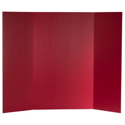 Constructed from 1-ply corrugated fiberboard with overlapping side panels that make transporting the board easy. The smooth, bold red surface has a slightly glossy finish that easily accepts markers, crayons, paints and adhesives. Back of board is brown kraft. Measures 36" high x 48" wide overall—side panels measure 36" high x 12.75" wide and the center panel measures 36" high x 22.5" wide. Pack of 24 boards.