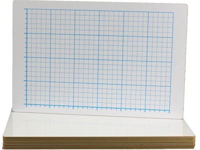 - Features a grid of 0.5" squares (20 rows by 30 columns) in blue on white surface on one side and plain white dry-erase surface on the other