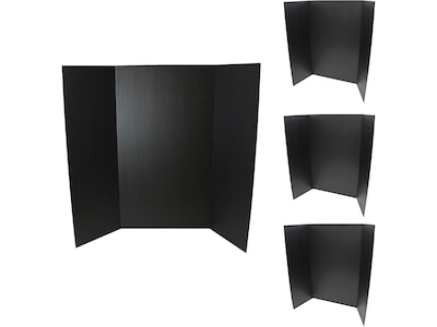 Flipside Tri-Fold Project Board, 48" x 36", Corrugated Paper, Black, 4/Pack (18067)