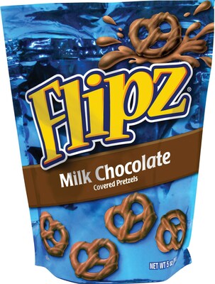 Flipz® Milk chocolate covered pretzel contains 50 percent cocoa. Pretzel is slow-baked and then enrobed in delicious milk chocolate coating that makes it an irresistible chocolate to taste, sold as 6 bags per box.