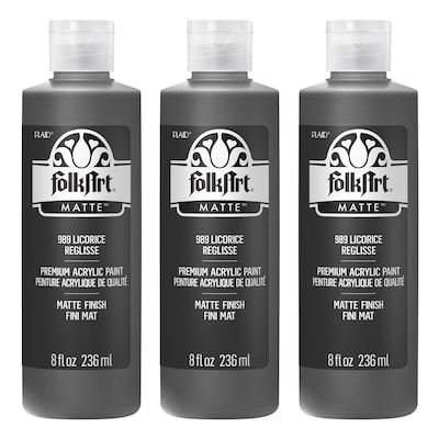FolkArt Acrylic Paint Matte, 8oz., Licorice, 3/Pack(FLK989-3)