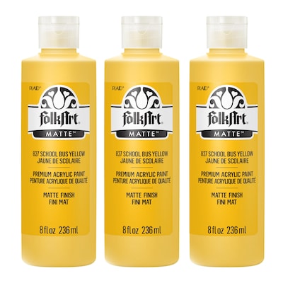 FolkArt Acrylic Paint Matte, 8oz., School Bus Yellow, 3/Pack (FLK827-3)