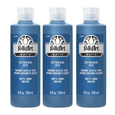 FolkArt Acrylic Paint Matte, 8oz., True Blue, 3/Pack (FLK875-3)