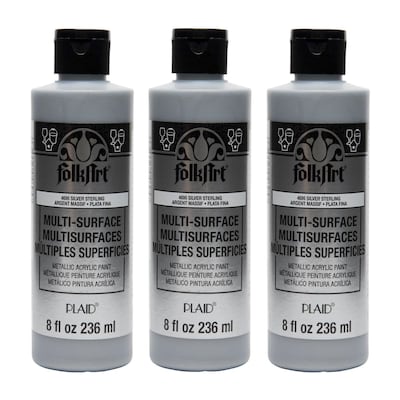 FolkArt Acrylic Paint Metallic, 8oz., Silver Sterling, 3/Pack(FLK4695-3)