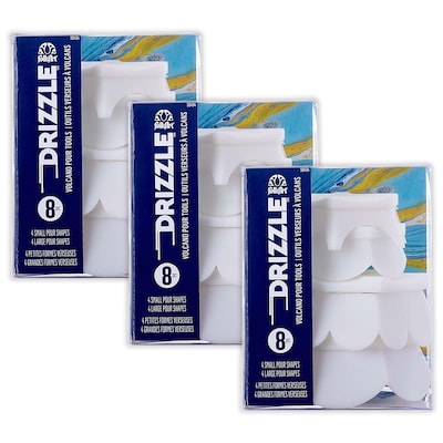 This 8-piece volcano set is a fun way to create fluid art with different visual effects to make a unique piece of art with FolkArt Drizzle Premium Pre-Mixed Fluid Pouring Acrylic Paint. Each piece is stackable and interchangeable to create different pouring effects. You can easily pour your acrylic pouring paint over or through each of these pieces. Express yourself through loose and colorful art with this handy tool and ready-to-pour colors! Great for a variety of fluid art techniques - perfect for letting your creativity flow. There are no two pours that are alike! Explore and experience the freedom of expression through your fluid paintings and creations with this durable acrylic pouring paint kit. Unleash your creativity with FolkArt Drizzle Volcano Pouring Set! Free your mind, free your color! Each 8-piece handy paint pouring tool set includes 2 small bases, 2 small tops, 2 large bases, and 2 large tops. Sold as 3 sets for a total of 24 pieces.