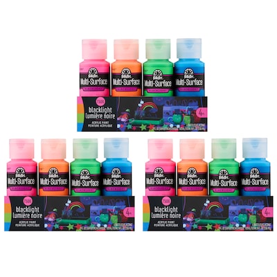 FolkArt Multi-Surface Acrylic Paint Set, 2oz., Neon Blacklight, 4/Pack, 3 Packs/Bundle (FLK7506-3)