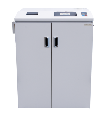 The Formax FD8732HS offers high-security paper shredding and optical media destruction in a single convenient, mobile unit. The paper cutting head shreds paper down to 1mm x 5mm particles. The shredder features auto start/stop, auto reverse to clear the in-feed, heavy-duty molded plastic waste bins, and the EvenFlow automatic internal oiling system that lubricates the paper cutting blades automatically for peak performance. The dual-head optical media system reduces media into particle sizes of 2mm x 2mm or less, including all types of CDs, DVDs, and Blu-ray discs. The optical media particles are contained in a separate waste bin for easy disposal. The FD8732HS is a rugged, user-friendly high-security solution that destroys both paper and optical media, ensuring top secret data remains top secret, and out of the wrong hands.