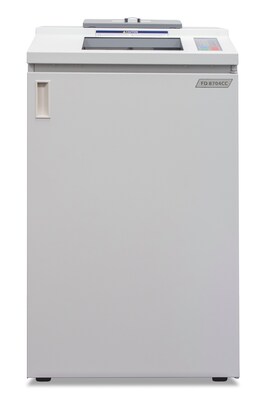 The Formax OnSite FD8704CC multimedia office shredder offers commercial-grade quality and unmatched features in a compact design that is great for the office environment. With two dedicated feed openings, the FD8704CC is capable of shredding paper, CDs, DVDs, USB thumb drives, MiniDV tapes, and ZIP/floppy disks. Paper can be shred at a speed of up to 12 feet per minute, with a shred size of 5/32" x 1 5/8". The FD 8704CC has a waste bin capacity of up to 28 gallons. Standard features include heat-treated steel blades, an easy-to-use LED control panel, a lifetime guaranteed waste bin, and a powerful AC geared motor. In addition, the Eco mode saves energy by automatically switching into standby mode after 5 minutes of inactivity.