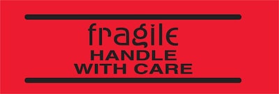 "Fragile Handle with Care" Labels, Red/Black, 3" x 2", 500/Rl