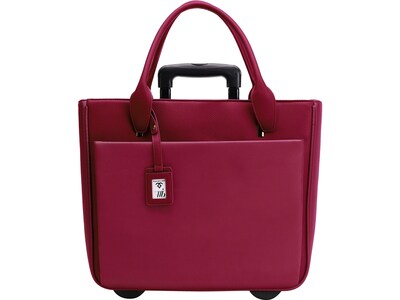 There's no wonder why the Francine Collection Florence roller tote is in high demand. Francine Collection's stylish and lightweight laptop roller tote wheels you through travel and work with fashionable ease. No matter your profession or destination, this burgundy laptop roller tote gives women the look of effortless, fashionable, and functional success, all with the traveling ease of wheels. Women want wheels. Francine Collection's Florence laptop roller tote is your answer.