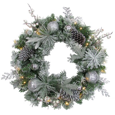 Fraser Hill Farm 24-in. Christmas Prelit Frosted Wreath (FF024CHWR003-1SN)