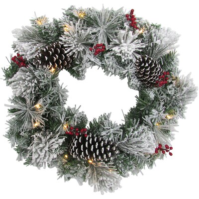 Fraser Hill Farm 24-in. Christmas Prelit Snow Covered Wreath (FF024CHWR009-1SN)
