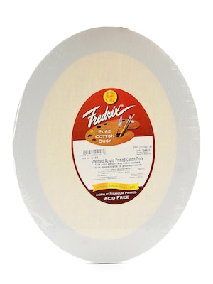 Pre-stretched oval canvas. 100 percent medium texture, acrylic titanium double primed cotton duck. Ready to paint for use with oil or acrylic paints. Popular for fine arts paintings or crafts. 1/2 in. deep. Canvas edges are glued (not stapled) around th e edges of the particle board wood frame. Acid free.