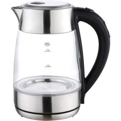 Mega Chef Glass/Stainless Steel Electric Tea Kettle, 1.7 ltr, Black/Silver (97096272M)
