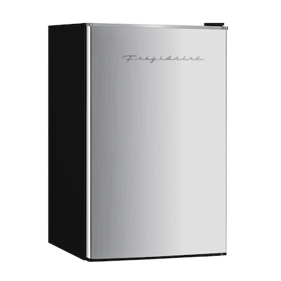 The Retro Platinum Frigidaire 3.2 Cu. Ft. Compact Refrigerator is roomy enough for your groceries but small and sleek enough to fit almost anywhere. Slide-out shelves provides efficient storage options and add to its unique style. Designed for energy efficiency, this mini fridge includes an ice cube chamber and features a reversible door that can be set up to either open from the left or right side. The flush-back design and invisible door handle offer a clean and retro appearance that looks great in your home, in a dorm, or at the office.