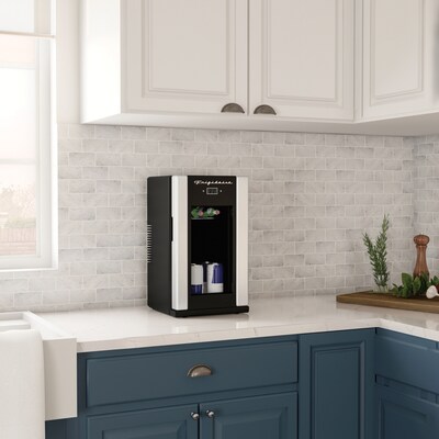 The Frigidaire 12.68 Qt. (12 L) Cooler Mini Fridge boasts efficiency and durability in 1 stylish, compact unit. The all-purpose, thermoelectric unit changes temperature in 1 quick switch. The Frigidaire fridge is ideal anywhere you need to store food, snacks, drinks, breast milk, insulin, skincare and beauty products, and medications. Its compact design features a roomy 12.68-qt. capacity and a tempered glass front. It fits up to 18 standard 12-oz. soda, beer, or drink cans or 4 bottles of wine and 3 cans! Use it everywhere; the sleek construction matches any decor, making it the ideal addition to your home, countertop, business office, dorm, hotel room, car, or on your next road trip or tailgate!