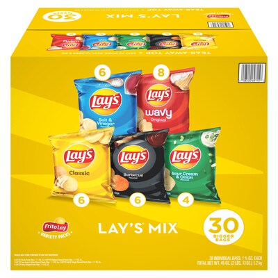 Frito-Lay Variety Packs provides the perfect portion size and variety to keep your entire family happy. No matter what the occasion from stocking the pantry, to your next family party, to the lunch box, or even a desk break, all you have to do is grab a pack and go. This Lay's variety pack has it all.