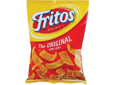 Stock your snack cabinet with these classic corn chips to satisfy salty cravings. These Fritos original corn chips come in 2-ounce bags and fit into most vending machines.