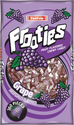 Provide these delicious candies to walk-in customers, long-time clients, and other guests. The soft texture makes these treats easily chewable, while the grape taste adds a bold flavor that can brighten anyone's day. These Tootsie Frooties grape candies come in a 38.8-ounce bag, so you can easily restock your supply, and they are individually wrapped, keeping them clean and making it easy to hand them out.