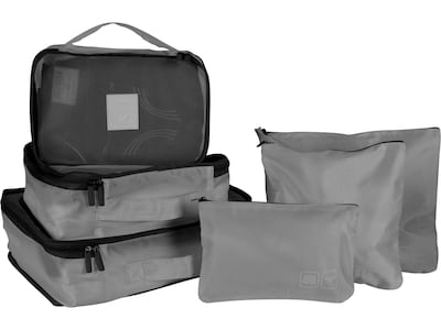 Make packing stress-free with the G Force six-piece ultimate traveling set, which includes three pouches (small, medium, and large) and three packing cubes (small, medium, and large). Each piece is made of lightweight, water-, stain- and tear-resistant ripstop material, making them durable and long-lasting. Maximize the space in your suitcase by organizing your packing essentials with the help of this set.