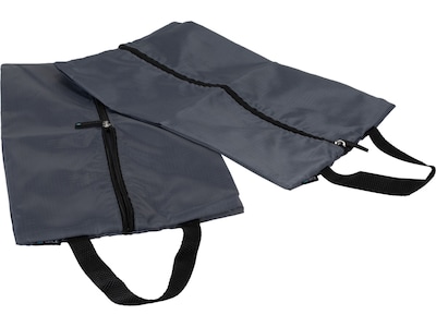 - Made of ripstop nylon in gray with black zippers and handles