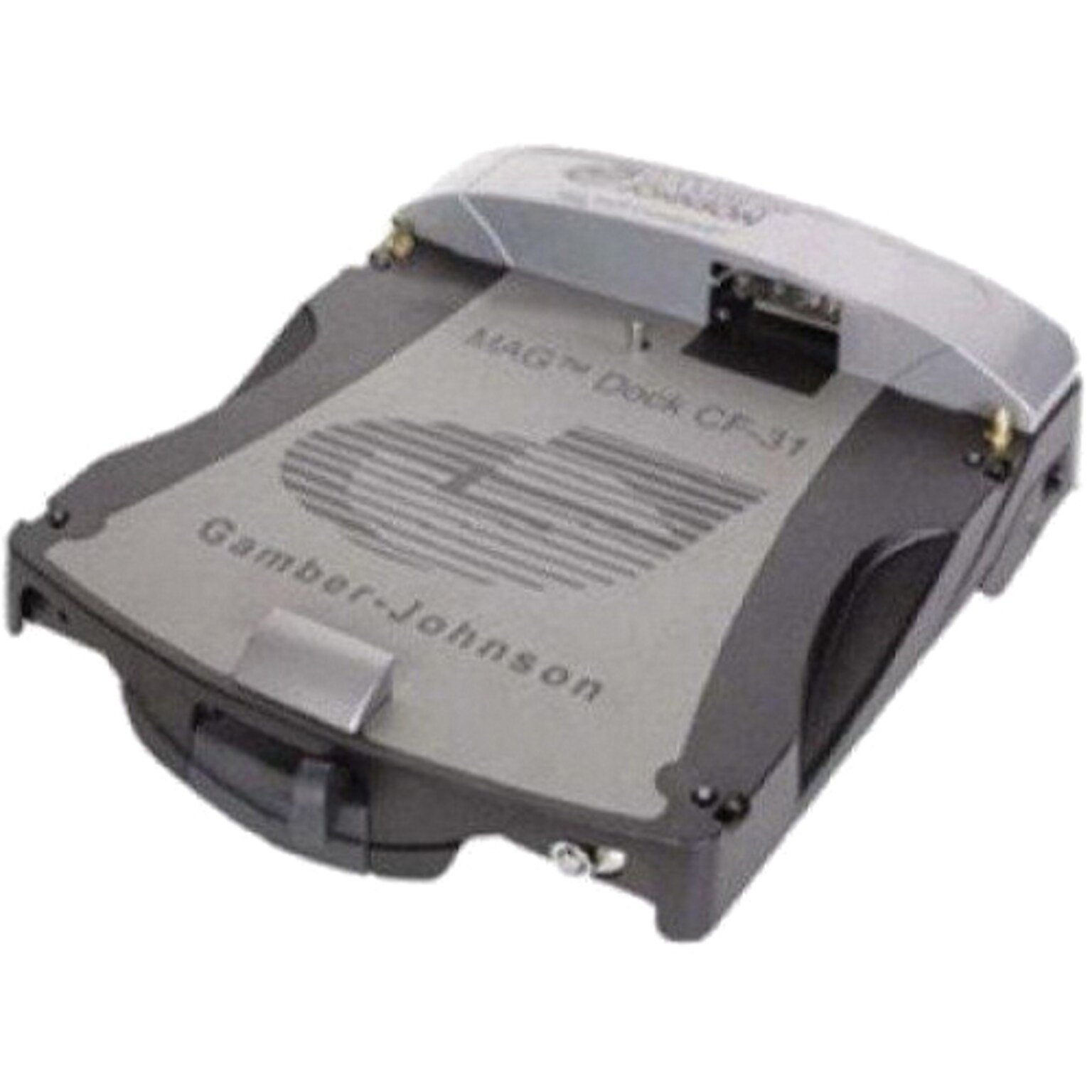 The Gamber-Johnson® 7160-0577-02-P vehicle docking station in black, is suitable for use with Panasonic ToughBook 54/54 Gloved Multi Touch/54 Lite/54 Performance/54 Prime. It features security bracket, rugged, spring-loaded system and latch lock.