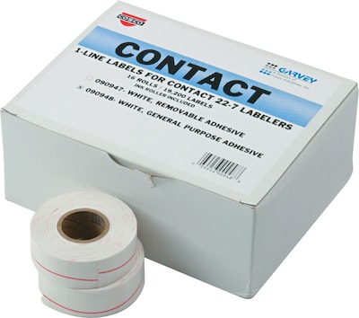Garvey® 1-Line price marker label in white/red color features general purpose adhesive and tamper resistant cross-cuts. Price marking label is sold as 19200 per box.