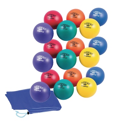 Includes 18 of our super safe 6"-diameter dodgeballs. Soft construction helps kids be fearless! These balls are much lighter than our competitors' with a special coating that virtually eliminates stinging hits, so kids can play hard and play safe! 3 each of 6 bright colors. This pack also includes an extra large mesh storage bag. Save big with our discounted Easy Pack price. Non-sting coating is a proprietary polyurethane. Our Gator Skin® balls are the highest-quality coated foam balls on the market. The tactile, non-sting coating makes them easy to grip, and the coating is so durable, they're virtually tear-proof! No more red marks from the stinging hit of a vinyl- coated or rubber ball, so everyone can play at ease and gain confidence. That means more fun during more activities. Our premium Gator Skin® balls are simply your BEST choice. Gator Skin® is a registered trademark of S&S Worldwide. Any use of this trademark without express written consent from S&S Worldwide is strictly prohibited. Gator Skin® is the original coated foam ball enjoyed by millions of satisfied customers.