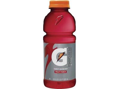 Keep your body better hydrated while working by stocking your break room refrigerator with these Gatorade fruit punch bottles.