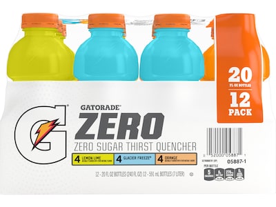 Gatorade Zero Sugar-Free Assorted Flavors Hydration Drink, 20 oz., 12 Bottles/Carton (05887)