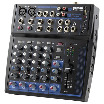 The Gemini GEM-08USB Compact 8-Channel Bluetooth Mixer is designed to make podcasting easier. Equipped with Bluetooth streaming, USB playback, customizable sound, and a 8-input 2-bus mixer, the GEM-08USB brings state-of-the-art professional-quality recordings on the go by giving you all the controls you need. This mixer was made to fuse a user-friendly interface with a premium sound.