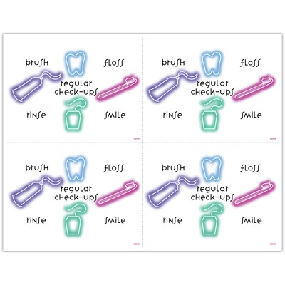 Attention-getting postcard captures your patients attention. The back of the postcard is blank so you can add a personalized message, using your own Laser Printer. Uncoated stock, perforated sheets. Four cards to an 8-1/2" x 11" sheet. 100 cards. Detached size: 4-1/4" x 5-1/2".