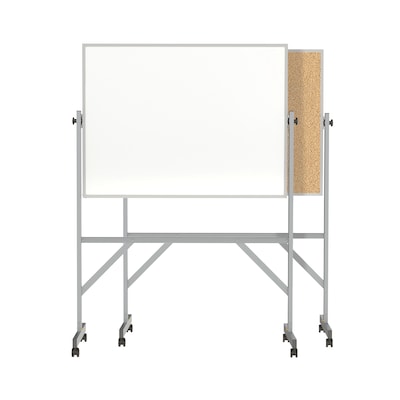 - Double-sided mobile whiteboard/cork bulletin board with framed writing/tack surface