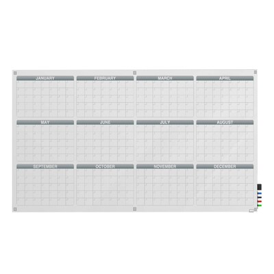 Ghent Calendar Harmony Glassboard w/ Standoffs, Round Corners, 1 Year Calendar, Non-Magnetic, 4'H x 8'W (GRPHMYRN31Y-48)