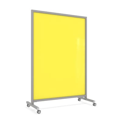 Ghent EZ Magnetic Glass Mobile Dry-Erase Whiteboard, Aluminum Frame, 75"H x 50"W, Yellow (EZ1MA7550YW)